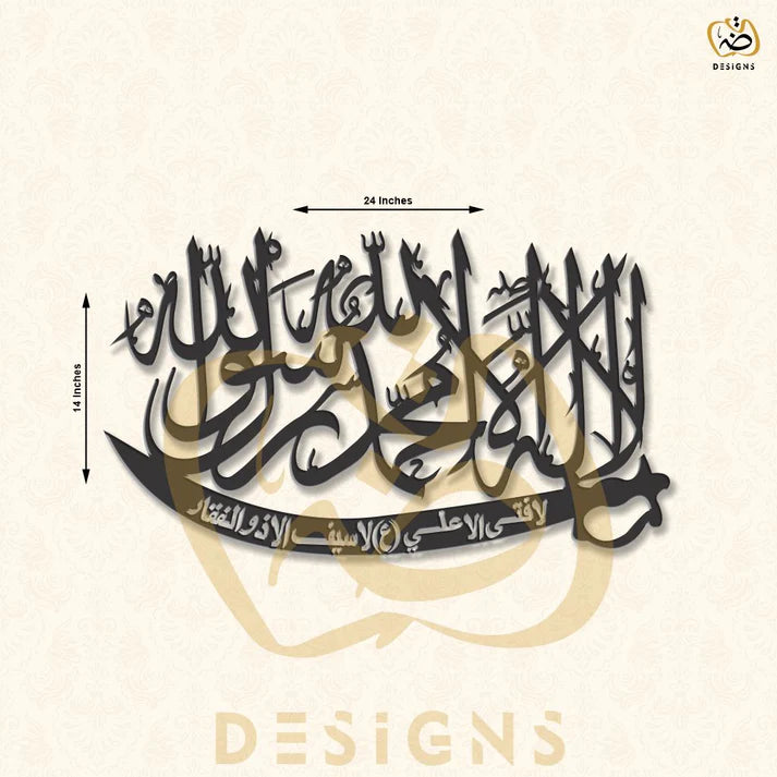 Stunning design of Kalma Tayyaba with Zulfiqar, made with High Quality Plywood with extreme accuracy and precise strokes of Laser Cutting Machines. Its intricate design and flawless finish make it a must-have for any room wall and house interior.